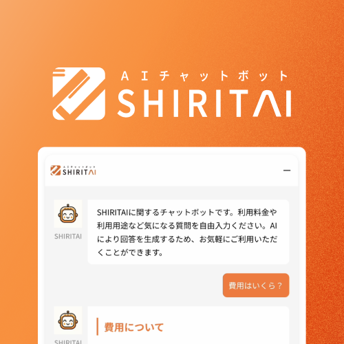 SHIRITAIは、企業の商品情報を学習したAIがリアルタイムで質問に答えるチャットボットです。お問い合わせ対応、リード獲得、商品レコメンドなど、あらゆる用途に活躍するAIです。